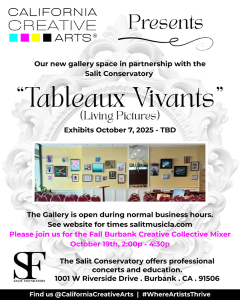 The gallery is located in the main ballroom of the Salit Conservancy – a space that hosts concerts and classes located at 1001W Riverside Dr., Burbank, CA 91506